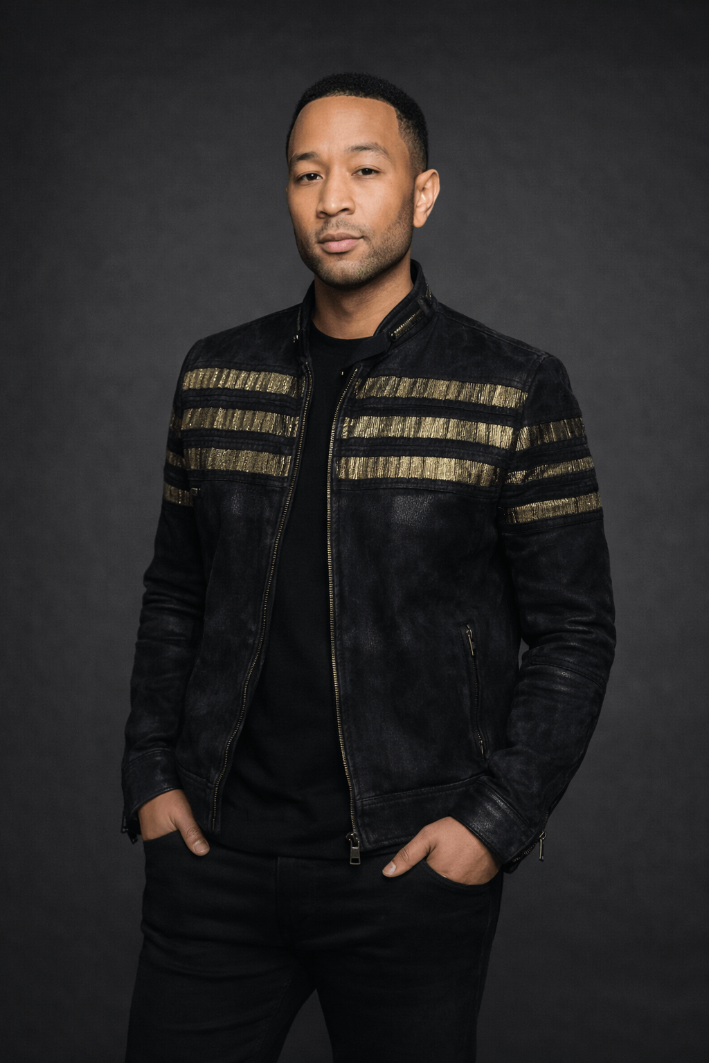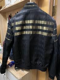 This men’s black quilted bomber jacket delivers a sleek and powerful stage-ready look inspired by outfits worn on international singing competition shows. Designed with premium quilted detailing and bold stripe accents on the chest, this jacket reflects confidence, authority, and modern celebrity fashion.