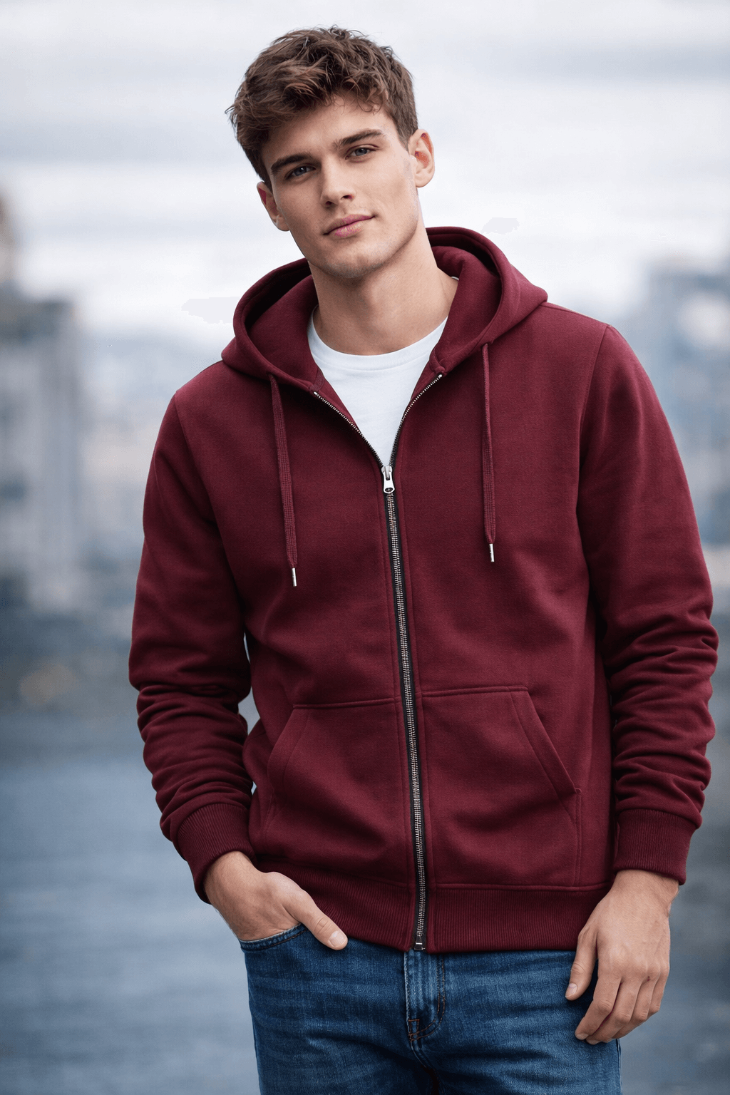 This men’s maroon hooded zip jacket delivers a clean, effortless look designed for everyday comfort and casual wear. Crafted with a soft fabric finish and a relaxed fit, it’s perfect for layering during cool evenings or outdoor activities.