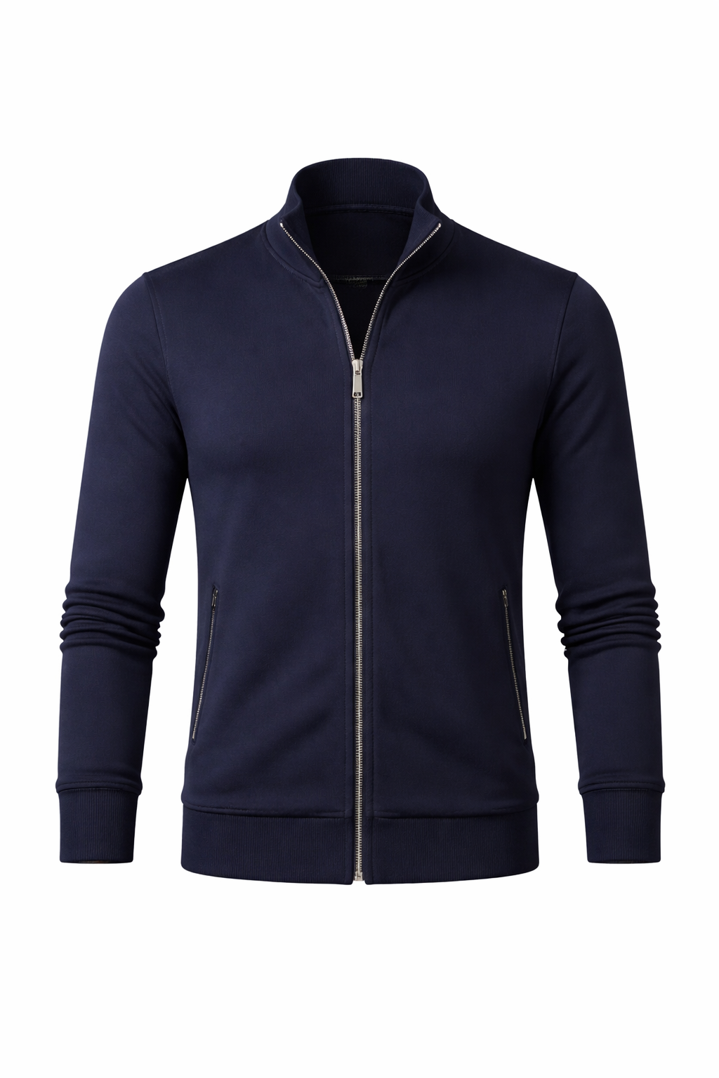 Upgrade your everyday style with this men’s navy blue zip-up jacket. Designed with a sleek slim-fit cut, ribbed cuffs, and a smooth front zipper, this jacket delivers a modern and polished look. Perfect for casual outings, evening events, or smart street style, it offers both comfort and confidence in one timeless design.