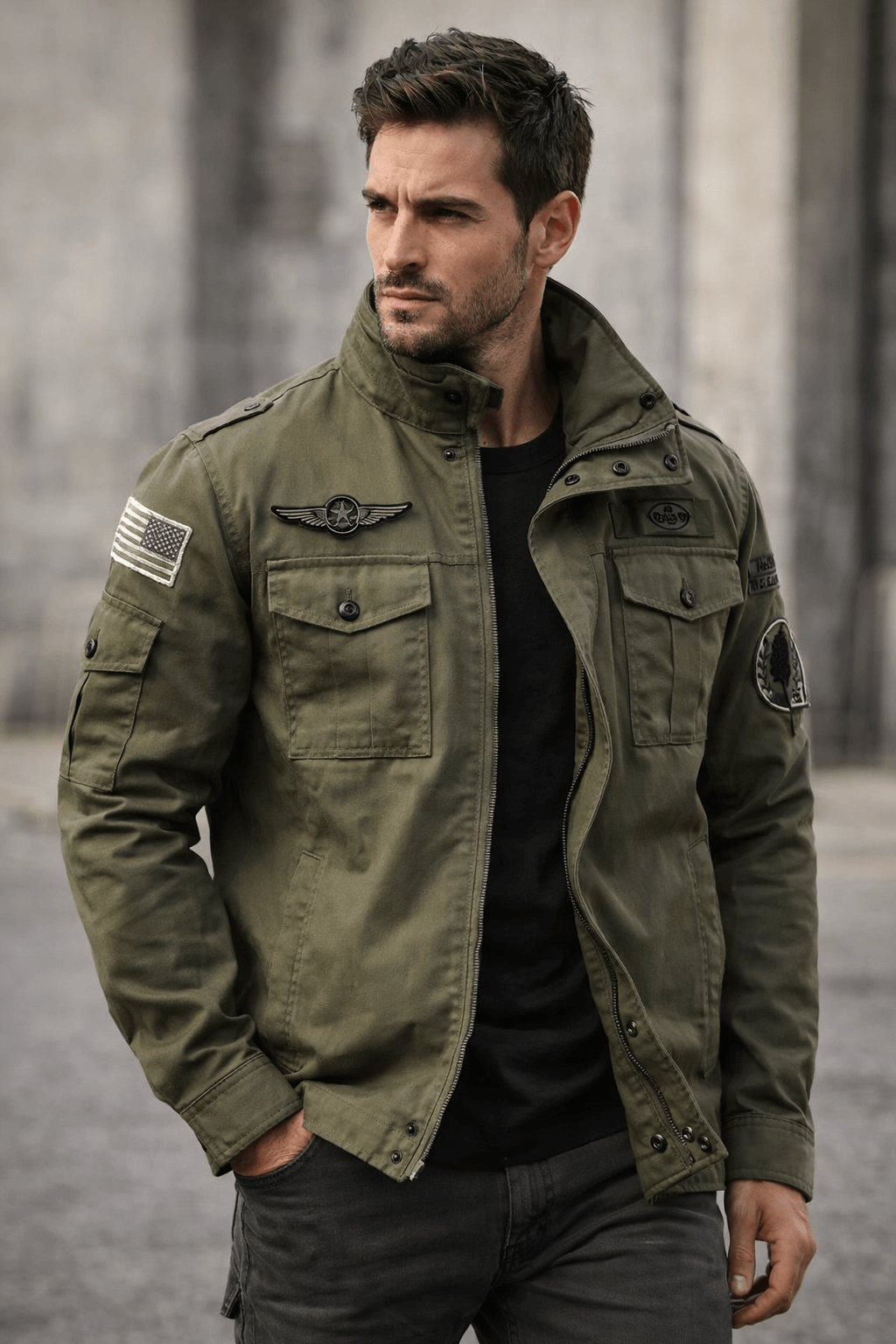 Whether you’re going for a military-inspired outfit or a classic everyday look, this combat jacket delivers both comfort and attitude.